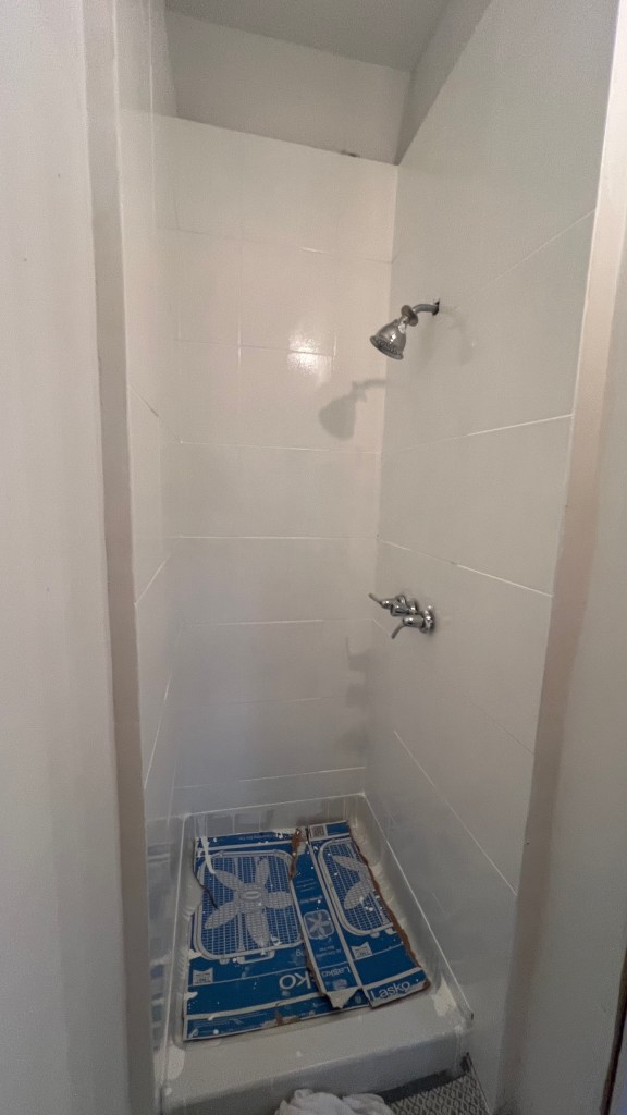 I added a new shower head, but eventually I would like to add a rain shower head. I also don’t have a place for shampoo or conditioner so I’m working on finding something I can attach to the tile.