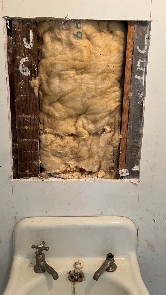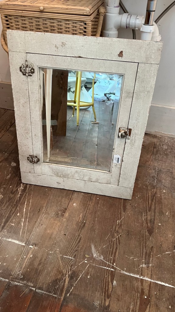 These vintage medicine cabinets are great for saving space. Unfortunately, In order for my contractor to install the cabinet in the wall we needed to cut the beam to center it over the sink. My heart sank. I didn’t like the sound of that and didn’t need the house falling over due to a mirror I had to have. Thankfully, my contractor, Dallas knew exactly what he was doing.