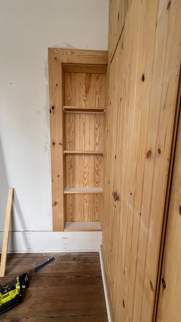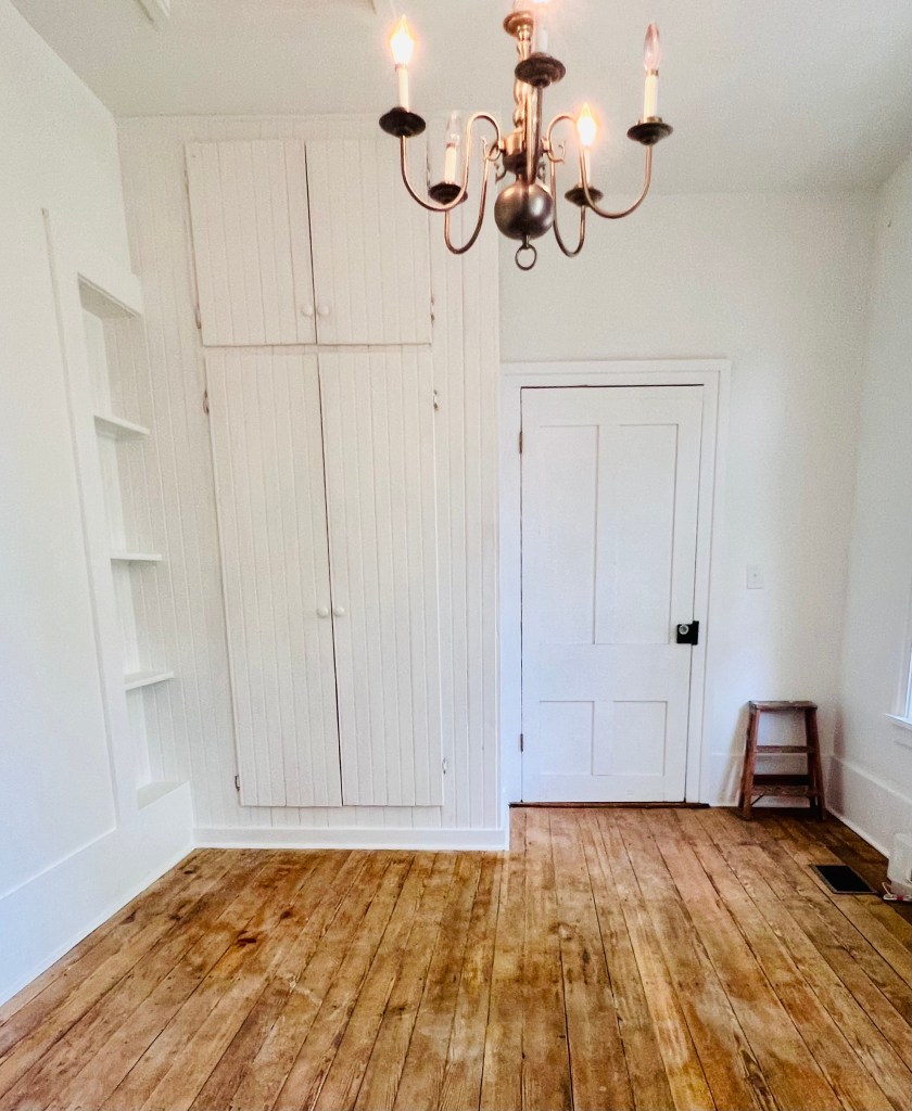 I hired a local handyman, who was painfully slow on the build out, but in the end it worked out. He built the closet from floor to ceiling like I wanted. These old homes have a lack of closet space so I wanted to go big on the closet but we only had so much floor space.