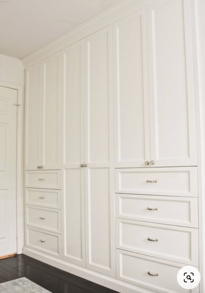 I had to come up with a resolution for the lack of a closet in the room but I wanted a built in that looked like it had been there all this time. Currently, I was using an old armoire for a closet. There was so much wasted space since I have such tall ceilings.